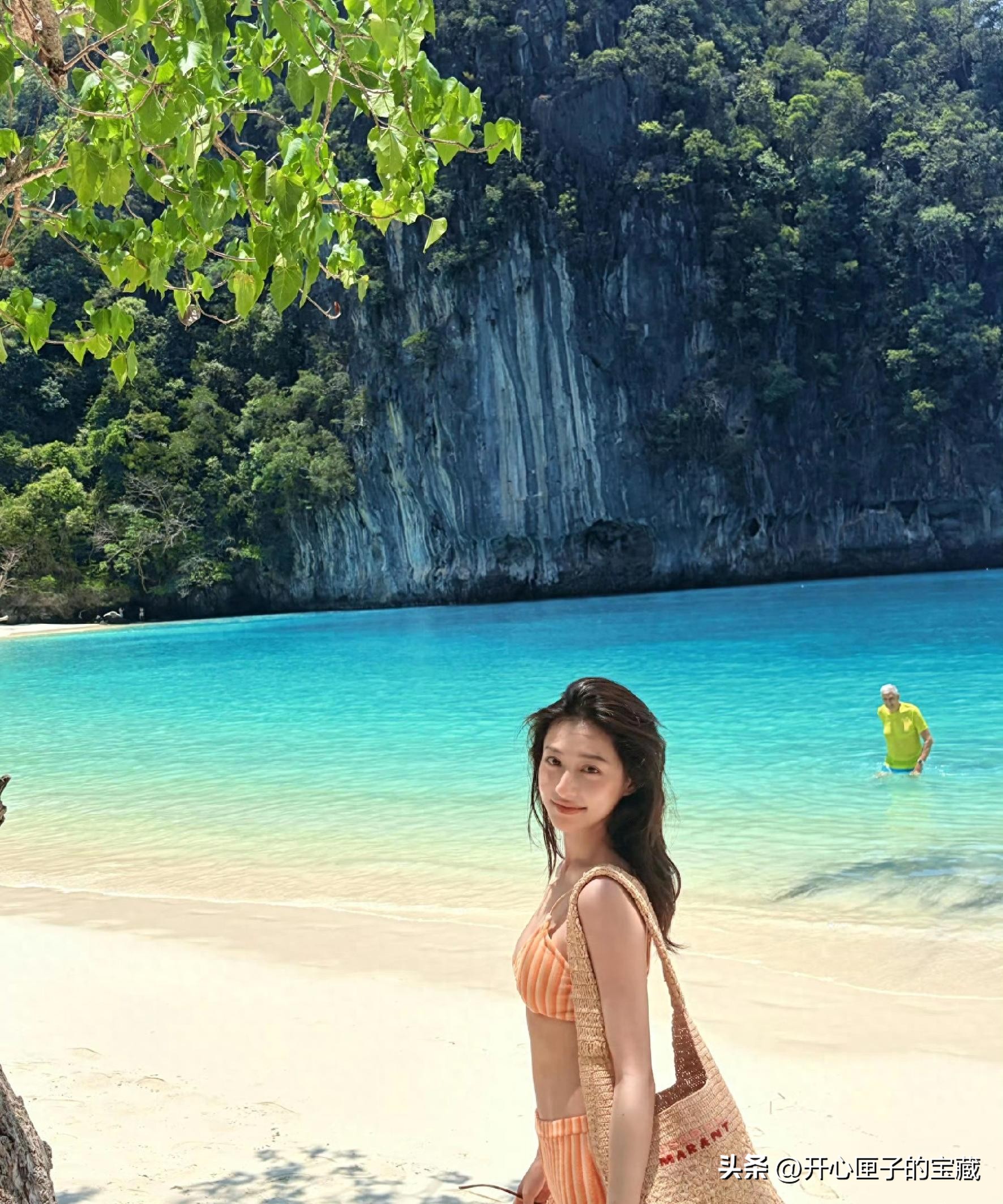 照片中,她身着橘色比基尼,剪裁简洁却不失亮眼气质,配合明亮的色调,直接把初夏的活力氛围拉满。阳光下的肤色和泳衣形成了强烈对比,视觉冲击感非常直接。