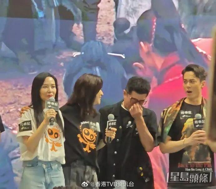 为答谢粉丝,众人带领全场大合唱《天命最高》,掀起超强回忆杀。古天乐一度感动落泪,宣萱轻拍他肩膀安慰,郭羡妮也靠在宣萱肩上哭。