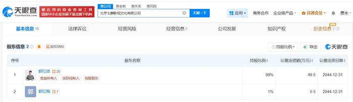 天眼查App显示,李小冉签约的MCN公司北京七麒影视文化有限公司成立于2024年3月,法定代表人为郭红梅,注册资本50万人民币,经营范围包括组织文化艺术交流活动、信息咨询服务、文艺创作等,由郭红波、郭红梅共同持股。