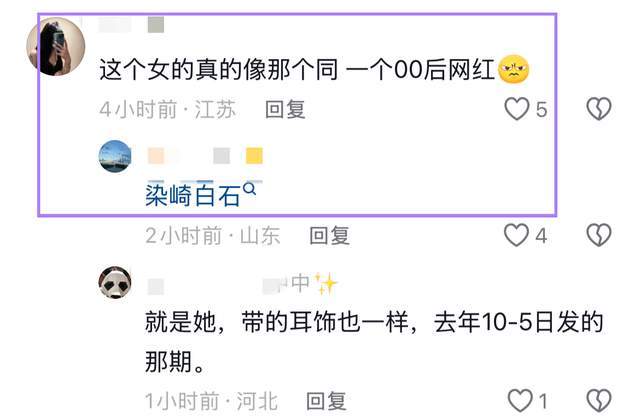 随后有网友根据正面照,找到了一位与她相似的网红,名叫“柒崎白石”,从该网红最新晒出的画面中可以看出,两人的确神似,而且还有网友扒出同款耳钉的细节,为此,很多人肯定她就是该网红。