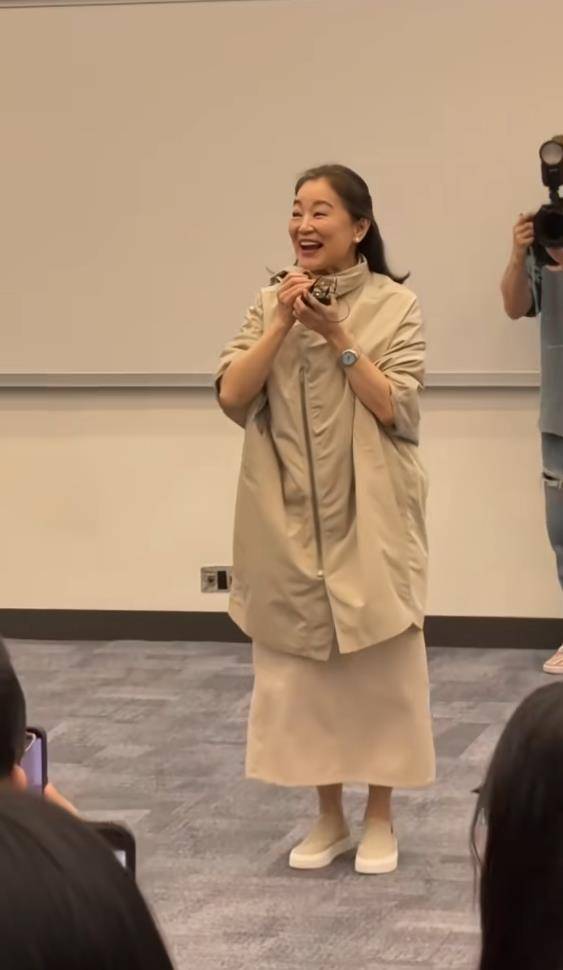 但真正让现场师生和网友破防的,是她在讲座前夜的一个小插曲。据现场透露,林青霞在讲座前一晚不慎从床上跌落,导致两根肋骨骨折。然而,这位71岁的影坛传奇硬是忍痛坚持完成了整场演讲,全程状态在线,谈笑风生。这一细节被曝出后,评论区直接炸了:“骨折了还坚持上台,这敬业程度,现在的流量明星学学吧。”