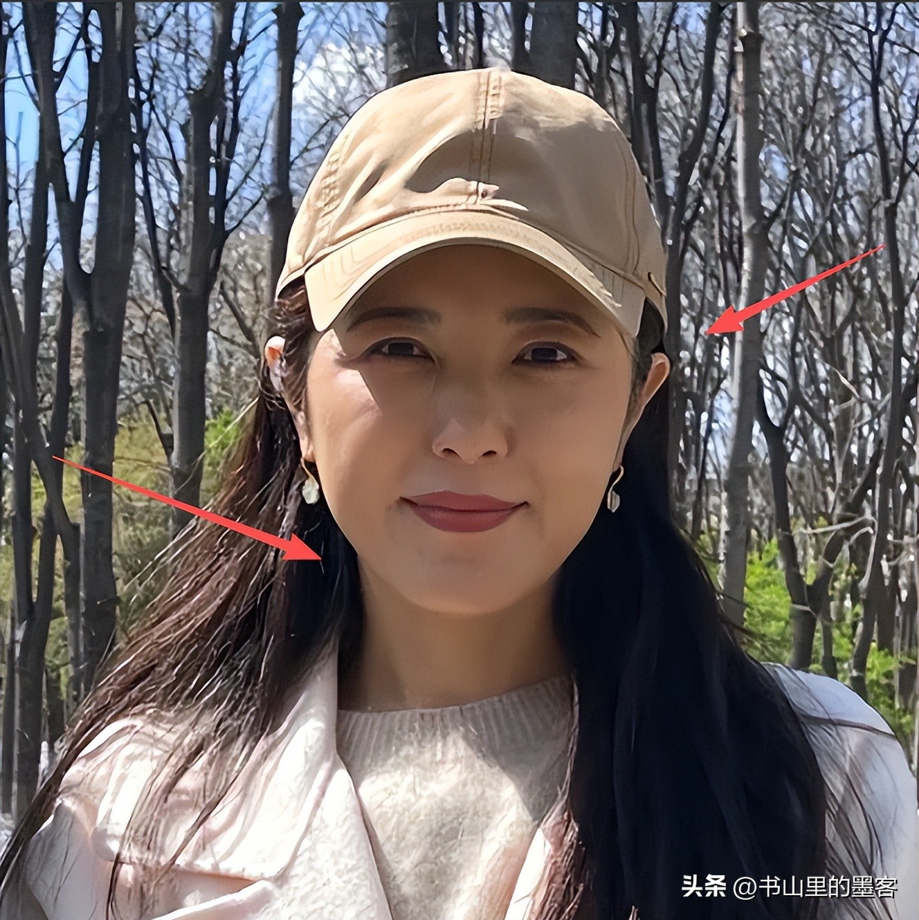 当时照片里的曾黎穿一件宽松的白色大衣,头上扣着卡其色的鸭舌帽,长发自然披在肩头,脸上只化了极淡的妆,几乎接近素颜。