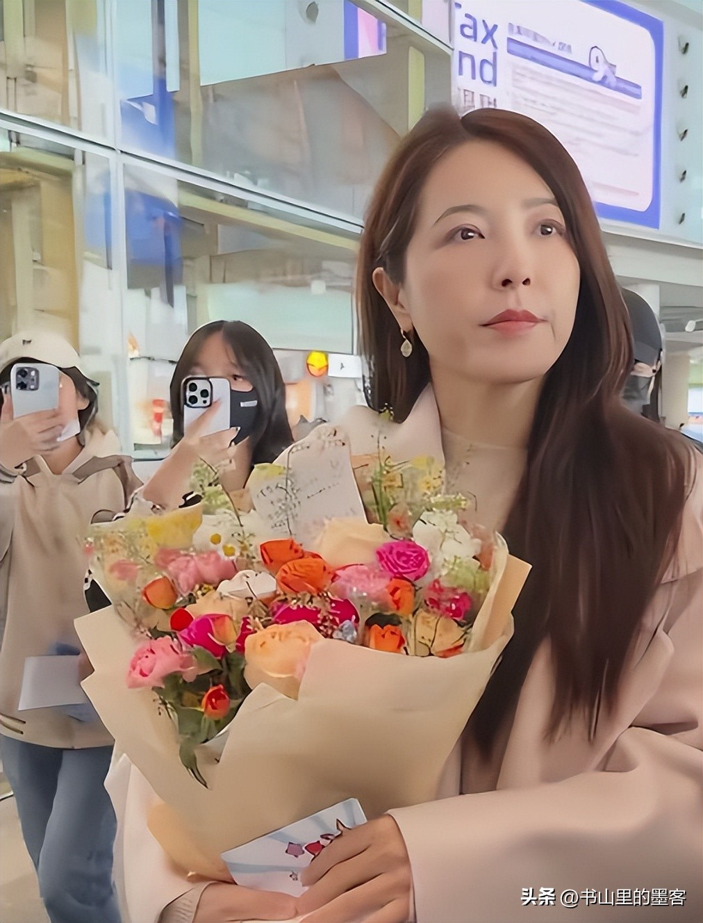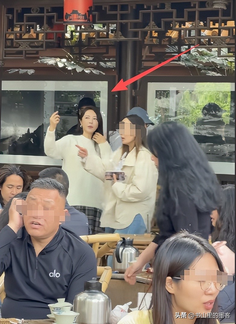 当时她站在街边的店铺旁,拿着手机不停地拍照,脸上妆容清淡,皮肤状态看着不错,没有明显的皱纹,个子高挑的她站在人群里,本应很显眼,可周围的游客都忙着自己的事,也没人认出她,大家都自顾自地喝茶、聊天。