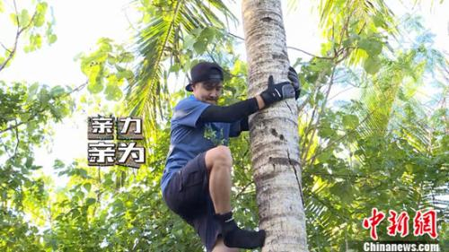 田亮、麦迪娜爬树摘椰子各显神通
