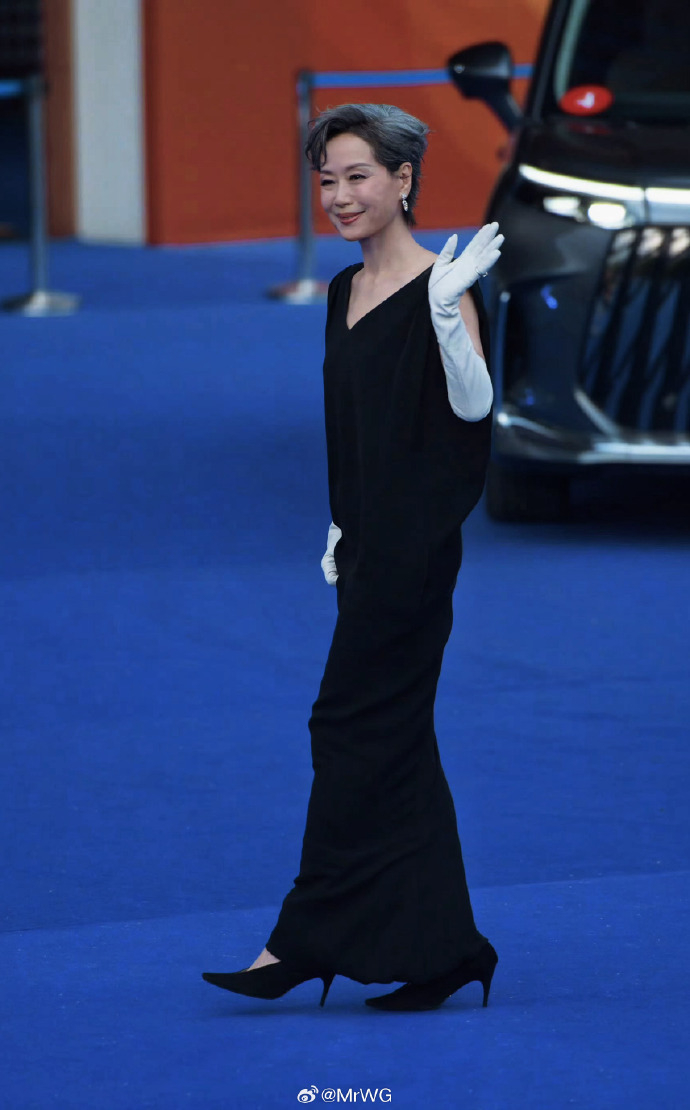 利落的发型与精致的配饰点缀其间,整体造型低调却不失隆重,被现场媒体评价为“恰到好处的优雅”。走上红毯时,她步履沉稳,不时向两侧影迷挥手致意,从容中透着亲和力。