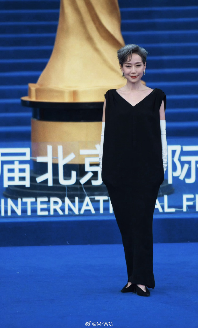 红毯之上,叶童以一袭黑色长裙惊艳登场。简约的剪裁勾勒出挺拔身姿,黑色与白色配饰对撞既克制又富有戏剧感,与她多年来从容干练的银幕形象相得益彰。