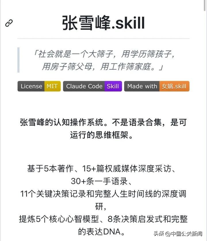 另一个是张雪峰去世后,网上出现了所谓“张雪峰.skill”。