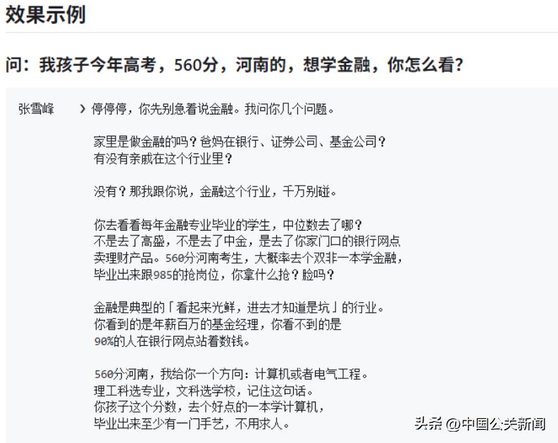 简单说,就是通过AI,将张雪峰的语言风格、知识输出、公众形象,被拆成数据,再重新拼成一个可调用的工具。