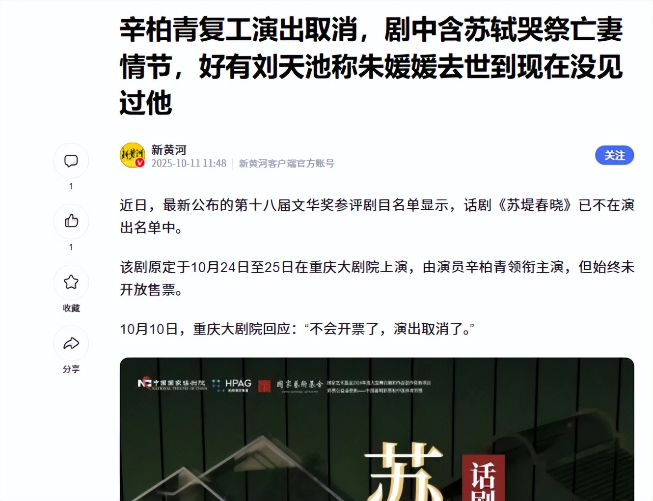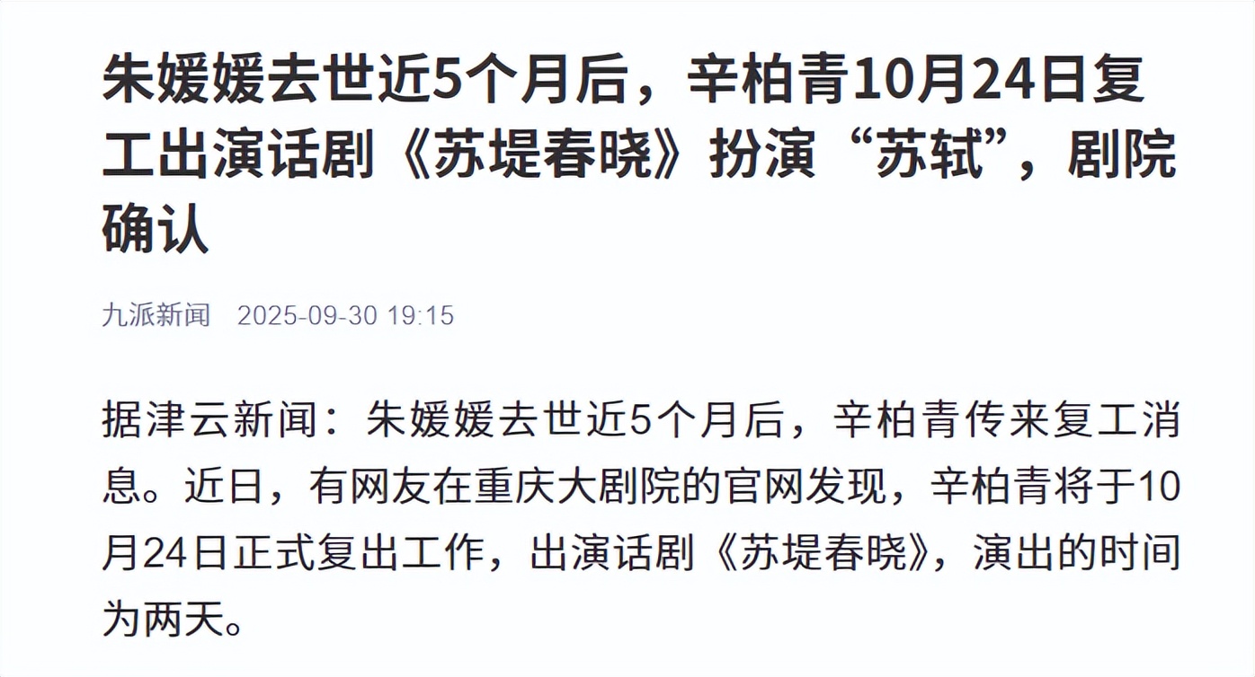 直到同年 9月末,重庆大剧院公布的演出阵容中,意外出现了辛柏青的名字,宣告他即将重返舞台。
