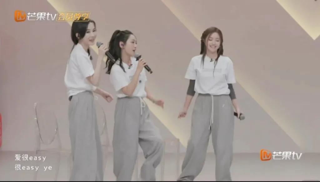 唐艺昕总体来说还稍微好一些,也在很努力地带动两个姐姐,但就是带不动。