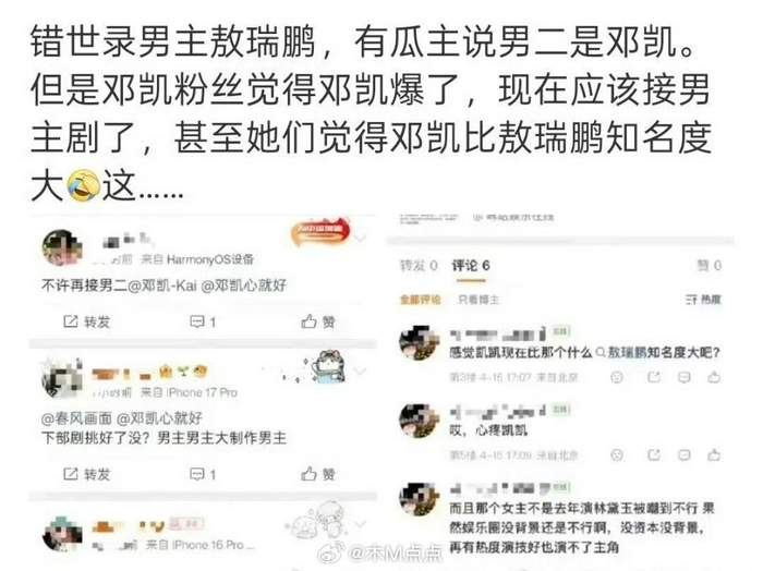 粉丝不太满意邓凯《逐玉》热度后又接了个男二,还是给刚冒头不久的敖瑞鹏做男二
