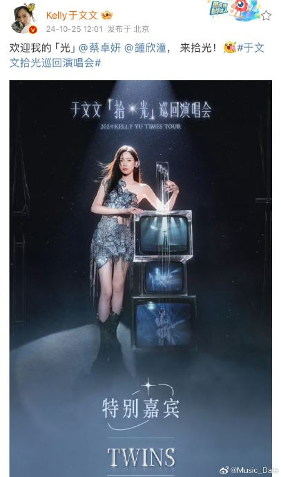 演唱会高光:追星天花板的名场面:2024年11月8日于文文深圳“拾光”演唱会,Twins作为重磅嘉宾惊喜登台。三人不仅同台飙歌,更在后台共同庆生,阿Sa与阿娇推着蛋糕出现的瞬间,被粉丝称为“次元壁彻底粉碎的时刻”。