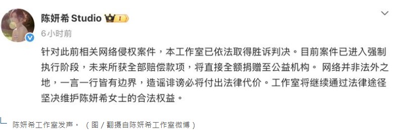 换做其他人可能也就忍气吞声了,但陈妍希选择用法律武器保护自己。她委托北京星权律师事务所发出声明,这不是为了钱,而是为了正本清源,让大家知道什么是该说的、什么是不该说的。更暖心的是工作室明确表示,所有赔偿金都将全额捐赠给公益机构——这说明她真正在乎的不是利益得失,而是希望借此传递正义的力量。