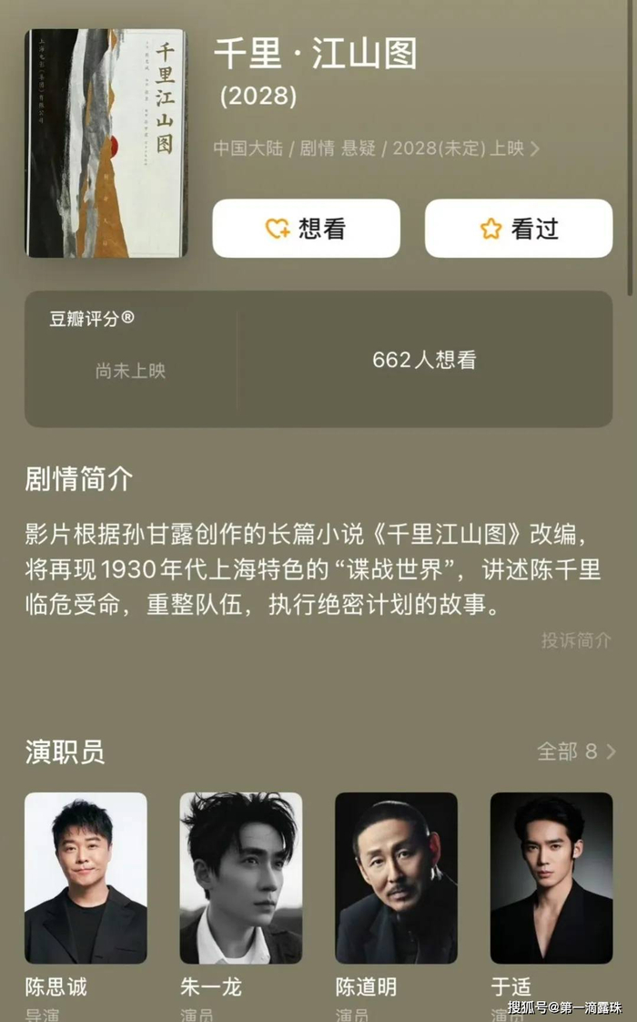 ## 朱一龙陈道明双影帝对决,顶配阵容加码,拍摄现场“无野鸡营销”,这部谍战片直接拉满期待值!(吃瓜简评),这部电影开机啦!双影帝朱一龙和陈道明同台对决,演技闪电互相碰撞,等着看点再无天花板!这趟谍战之旅,顶配班底太能打了,文咏珊、张子枫、于适、白客、王彦霖、王传君,简直就是全员大神阵容啊!,说到这部电影,首先要提到它的拍摄现场,据悉,这部电影的制作规格可谓是“顶级无敌”,剧组在上海车墩影视基地和浙江横店精心拍摄,1:1复刻193年代的上海弄堂和外滩场景,精度简直是“壁纸级”,这不仅是对上海历史文化的致敬,更是对老上海谍战世界的还原,美学意境拉满,拍得你仿佛穿越回了那个充满阴谋与智慧的年代。,拍摄期间可是“危险”的!据网友爆料,拍摄现场不仅没有任何“野鸡营销”,连一个路透画面都没有,完全是“专业人上班”的状态,想想那些光鲜亮丽的开机仪式场景,都是精心策划的,绝对是“无提前路透的专业制作”。,至于这部电影的拍摄周期,整个流程大概90天,先在上海拍完后转场到横店,预计7月底就能杀青,计划在2027年春节或者五一档上映,虽然市场竞争激烈,得和《流浪地球3》《哪吒3》等大片抢生日档,但顶配班底和高规格制作,咱们粉丝们可一定要给它一个机会,稳操金营运!,还有一个小小的“小贴士”:这部电影和同名电视剧是完全不一样的哦!虽然都改编自同一部小说,但团队和故事线都大相径庭,影版的名字还带了个“间隔点”,叫《千里·江山图》,看起来更有档次,电视剧由张若昀、刘诗诗主演,2025年11月就开拍了,两部作品完全独立,各有各的风味,咱们吃瓜爱好者们可别混淆了,免得误入歧途哦。,这部谍战片真的太给力了!顶配班底、金牌导演、华丽制作,简直是国产谍战片的“终极豪华版”,虽然拍摄过程中有些“惊心动魄”,但只要剧组能好好打磨剧情,还原历史质感,这部电影一定能重塑国产谍战片的天花板!让我们一起蹲守,期待这部诚意之作早日和大家见面!
