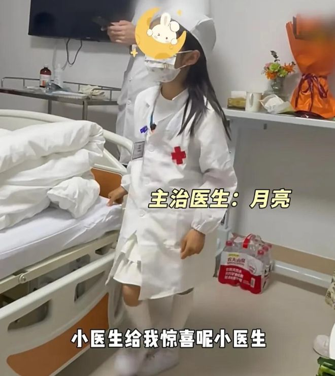 与此同时,老公付辛博带着7岁女儿小月亮前来探望,女儿甚至穿上小小护士服,萌态十足,一家人的温馨互动冲淡了手术前的紧张氛围。不过,也有网友吐槽:“生个病也要拍vlog,是不是太爱刷存在感了?”