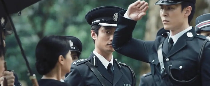 三、1995年香港警队政治部解散,年轻的蔡元祺(吴彦祖 饰)身穿警服,正襟危坐面对几名英国人的提问,一句“你能在1997年之后,继续维护我们英国的利益吗?”是所有故事的起点。