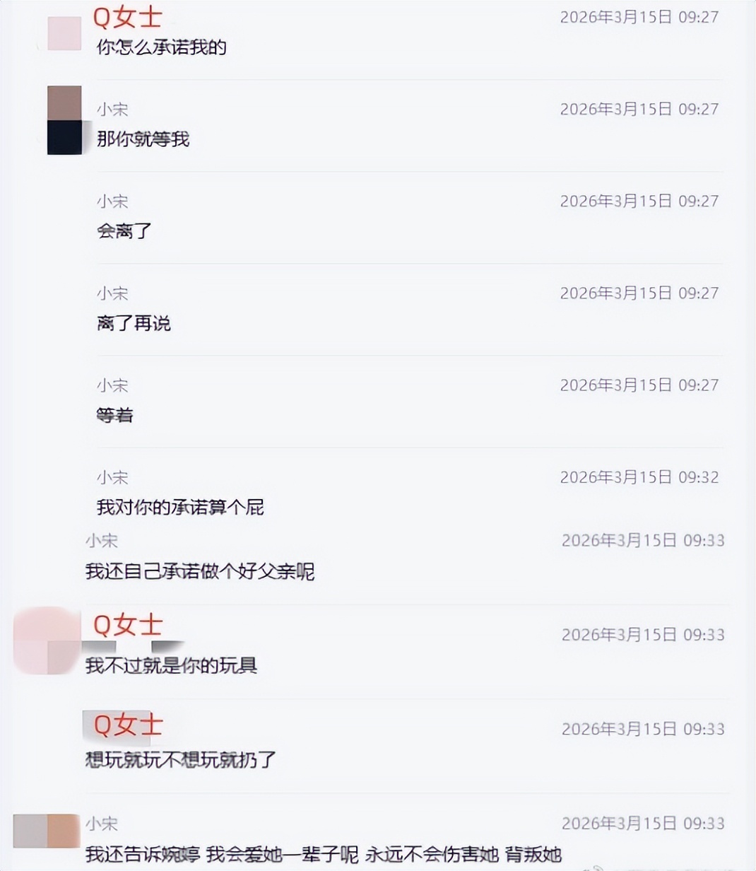 他承诺 “给孩子上完户口就离婚”“2026年春节前给你名分”,用甜言蜜语哄骗Q女士深陷其中。