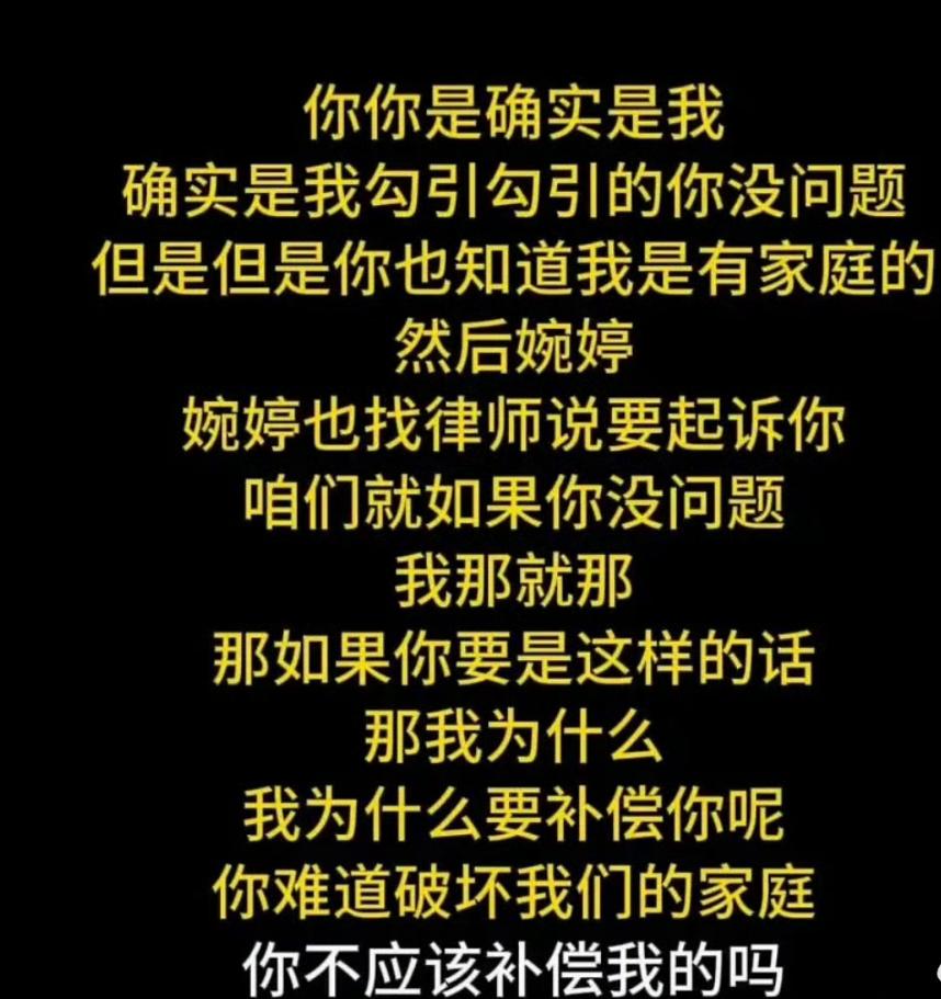 “你也知道我有家庭,我为什么要补偿你?你破坏我们的家庭,你不应该补偿我吗?”