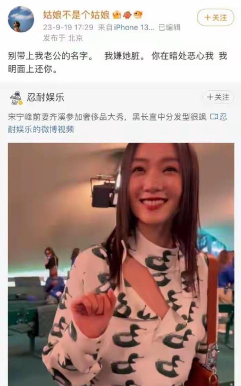 当时有营销号转发齐溪出席时装周的视频,用“宋宁峰前妻”介绍她,张婉婷直接转发评论: