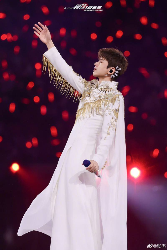 2026年的北京春天,最是一年春好处。在国家体育场“鸟巢”,这座能够容纳数万人的巨型建筑,在16个夜晚里,被同一种声音、同一种颜色的灯海所包围,2026张杰未·LIVE-「开往1982」世界巡回演唱会北京鸟巢站在3月27日至4月19日上演。从2018年的第一次尝试,到2024年、2025年的不断创新,再到如今2026年创纪录的16场连开,歌迷开玩笑说:“杰哥已经住在鸟巢了。”但在张杰眼中,这16个夜晚的演出不是一份苦差事,“我发现,(去年)做完12场之后,我整个人跟只做了几场一样的感觉。 我想象当中的累到‘瘫倒’并没有发生,反而觉得自己可以再做,甚至比上次更自如。”在演唱会间隙,张杰接受了新京报记者专访。他坐在后台的椅子上,身体呈现出一种松弛感,眼神清亮,一点没有“长期备战”的疲态,反而闪耀出一种灵动的“活人感”。当记者提及他在2024年演唱会上穿的一件白色宋锦披肩,称赞其精美大气、闪闪发光,令人印象深刻的时候,张杰爽朗地笑着说:“那以后也可以再继续穿,我穿白色是好看的。”这种自如和放松,来自他和自我逐渐达成的某种平衡。在专访中,张杰展现出一种令人宽慰的成长样本:一个曾经被争议包围、被压力折磨的年轻人,如何通过二十二年的长跑,把自己修炼成了一颗能够照亮整座体育场的恒星。今年,他将舞台从“镜像台”升级为“四面台”。这意味着,在这座巨大的体育场里,几乎不再有遮挡歌迷视线的死角。他也必须像一颗恒星,向四面八方散发引力。这种改变,开启了一场关于“斗转星移”的硬核浪漫。