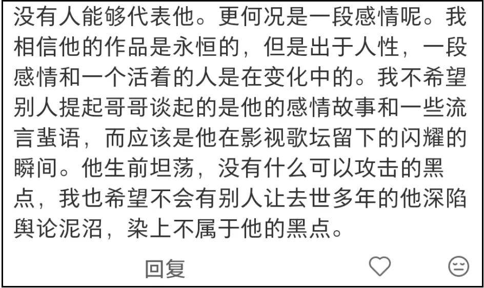 张国荣似乎做到了,然而近年有关张国荣生前爱人唐鹤德的争议,让越来越多人把关注重点放在了他们的感情上,不知不觉,张国荣不再是一个单纯的、被铭记的巨星,而是成了不同人展示自身情绪的符号。