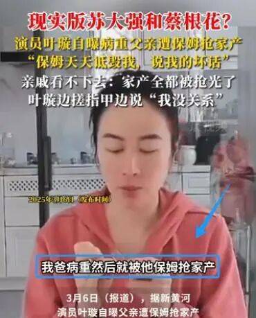 不少网友表示叶璇的遭遇简直是真实版的《都挺好》。电视剧《都挺好》中,保姆“蔡根花”利用苏大强的信任,试图侵占苏家财产,最终被苏大强女儿揭穿。