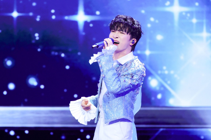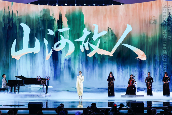 ↑4月25日,歌手周深在闭幕式上演唱歌曲。
