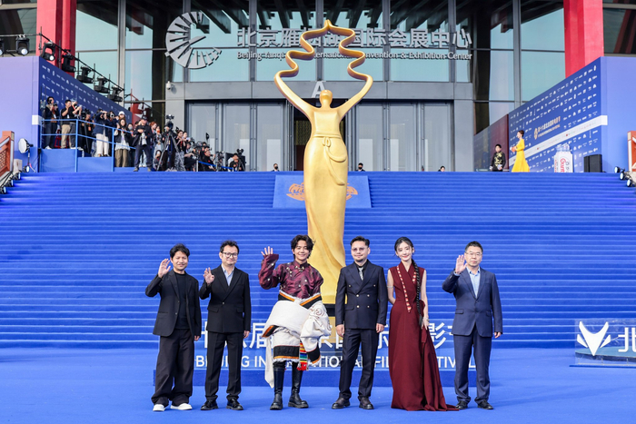 ↑4月25日,电影《梦寻苏毗女儿国》主创团队亮相北京国际电影节闭幕式入场式。