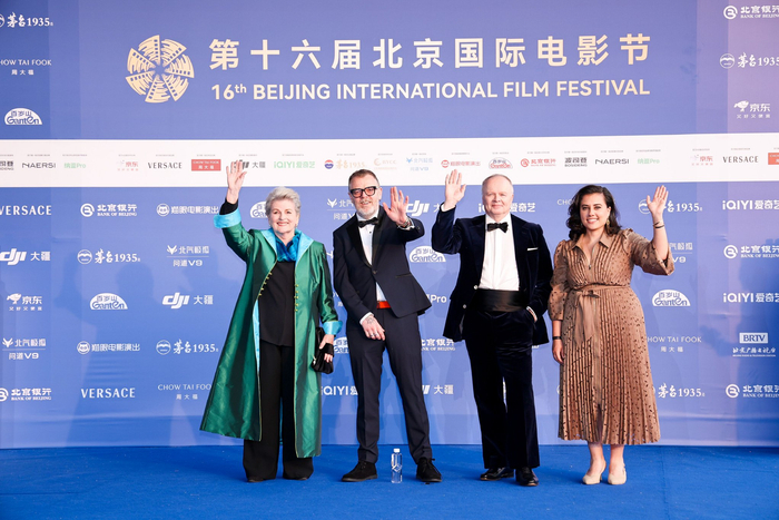 ↑4月25日,电影《危情蜻蜓》主创团队亮相北京国际电影节闭幕式入场式。