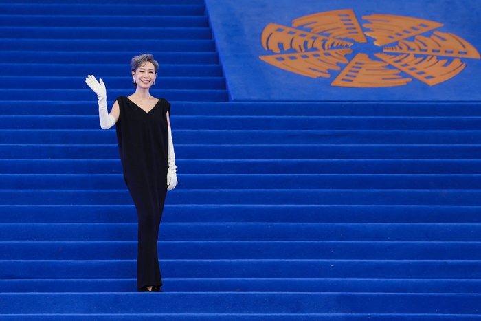 ↑4月25日,演员叶童亮相北京国际电影节闭幕式入场式。