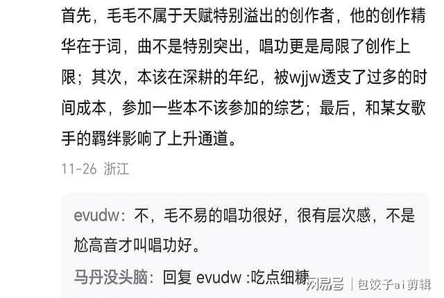 **吃瓜简评:毛不易高开低走,网友自测原因,自测答案**,近年来,毛不易的音乐事业从巅峰直坠深渊,让不少乐迷痛不欲生,这位曾经“华语乐坛巨擘”的毛不易,到底是怎么从“全民神曲”到“无人问津”的?咱们来一起来分析这背后的原因吧!,### 一、早年成就:从无名到巅峰,毛不易的崛起,可以说是华语乐坛的一次奇迹,他的歌曲仿佛都沾了魔水,令人一听就深深陷入其中,像《消愁》这样的歌曲,以简朴的旋律和深刻的歌词,勾勒出现代人面对生活压力时的无奈与迷茫,引发了无数人的共鸣,更别提《像我这样的人》这样的经典作品,简直是每个90后青春的主题曲。,毛不易的成功,不仅仅是因为他的音乐才华,更是因为他完美地把握了当时乐迷的审美需求,他那一瞬间的叙事风格和细腻的情感表达,成为了华语流行音乐的标配,他的每一首歌都像是生活的写照,勾勒出每个人内心深处的情感波动。,### 二、高开低走的原因:一场戏剧性的逆转,随着时间推移,毛不易的音乐风格逐渐陷入了一个死胡同,他的作品开始显露出明显的单一特征,那种带着“丧气”的风格虽然在一部分粉丝中引发共鸣,但对更广泛的听众来说,难免会出现听腻的感觉,这种“单一化”在现代音乐市场显得尤为可怕,因为听众们对多样化的音乐体验有着更高的要求。,除了音乐风格的单一化,毛不易在综艺节目中的“佛系态度”也成为了争议的焦点,他在节目中展现出的随和与沉稳,虽然让他在竞争中显得独特,但也引发了人们对他的音乐创作动力的担忧,在音乐行业,保持积极的竞争心态和追求极致的表现,往往是成功的关键因素之一,而毛不易似乎已经不再追求这些,反而将音乐当作了一种生活的调剂。,### 三、网友自测原因:自测答案,不少网友在评论区给出了自己的“吃瓜答案”,有人认为,毛不易的音乐风格确实开始显得单调,缺乏创新和多样性,与早期的佳作相比,近期的作品常常让人感觉“老套”,还有人调侃道:“毛不易的歌,其实就是一味地唱‘丧’,简直像是在进行某种‘情感工业化’!”,更有趣的是,有网友对毛不易的“佛系态度”提出了质疑,他们认为,如果一个音乐人在综艺节目中表现得太随和,可能会让人对他的音乐创作能力产生怀疑,毕竟,音乐创作需要激情与热情,而不是一味地沉稳与佛系。,### 四、吃瓜总结:高开低走的深层原因,从市场需求的角度来看,毛不易的音乐风格确实存在一定的局限性,在这个信息爆炸的时代,新兴音乐人以独特的风格和创新的方式迅速崛起,吸引了大量的耳朵,毛不易的作品虽然曾经“出圈”,但在市场竞争中逐渐失去了自己的定位。,更深层次的原因,可能是毛不易本人在音乐上的成长停滞,早期的创作能力让人惊叹于他的才华,但近期的作品未能达到昔日的高度,音乐市场对“出圈”的追求需要不断的灵感与突破,而毛不易似乎在这方面逐渐失去了灵感。,### 五、未来展望:吃瓜专家的建议,对于毛不易未来的发展,咱们吃瓜专家给出了三点建议:,1. **保持自我,重拾热情**:毛不易的音乐风格虽然在某些人心中有着独特的地位,但这并不意味着他不能尝试新的风格和体验,音乐的魅力在于不断的探索和突破。,2. **与时俱进,迎接多样化**:现代听众对音乐的需求已经发生了很大的变化,毛不易需要在保持自我风格的同时,尝试更多的音乐类型,满足不同听众的需求。,3. **重拾创作热情**:音乐创作需要不断的努力和热情,毛不易如果只是将音乐视为生活的调剂,那么他的创作能力很可能会停滞不前。,### 六、吃瓜大结语,毛不易的高开低走,虽然让人唏嘘,但这也成为了华语乐坛变迁的一个缩影,音乐市场的变化、听众需求的升级、艺术家成长的停滞,这些因素共同导致了毛不易的事业低谷。,毛不易的音乐之路仍在继续,无论结果如何,重要的是他在探索中不断成长,始终保持对音乐的热爱与追求,毕竟,音乐不仅仅是为了成功,而是为了表达内心的情感与世界的视角。,咱们给予毛不易一个鼓励:希望他能重新找回音乐的热情,迎来新的突破与高峰!毕竟,他的音乐曾经感动了无数人,而未来也许会有更多感动的时刻。