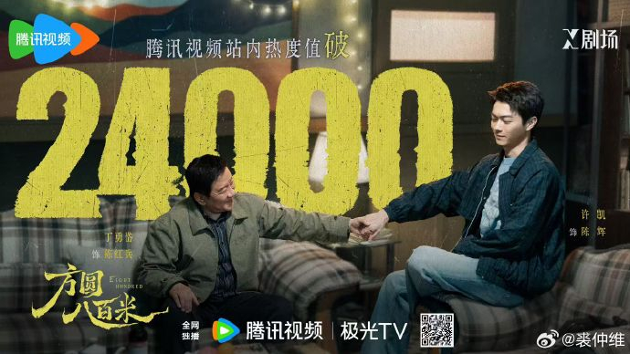 腾讯视频热度破24000,许凯角色"陈辉"站内热度破亿创X剧场纪录。