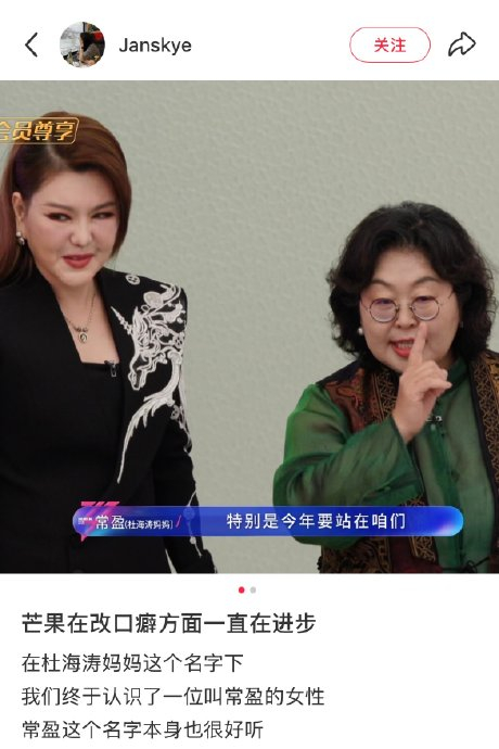 强调个体身份价值:在《乘风2026》等节目中,芒果台不再以"杜海涛妈妈"代称,而是标注其本名"常盈"。许多网友认为这一改变尊重了女性作为独立个体的价值,而非仅通过家庭角色定义。例如,有观众感叹:"常盈这个名字好听又有辨识度,比'涛妈'更体现对本人身份的认可"。