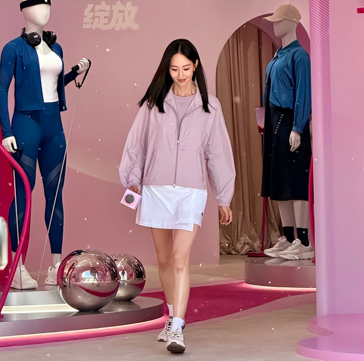 她全程保持着优雅的微笑,面对镜头站姿挺拔,可过于消瘦的身形,让她撑不起简约的运动装,显得松松垮垮。