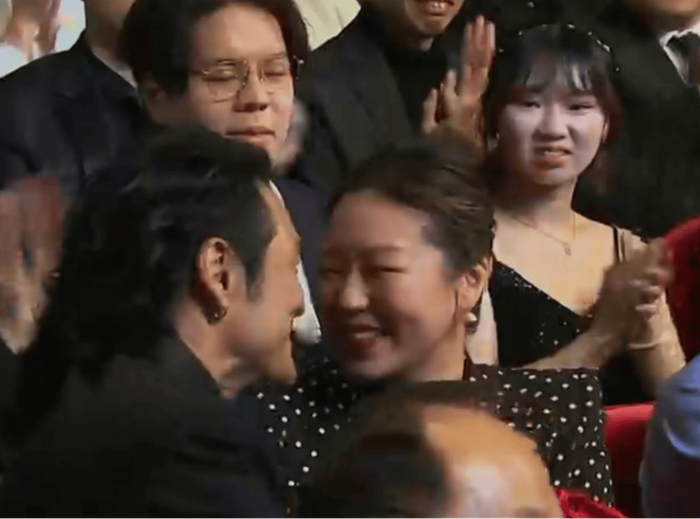 舒淇本人获奖时很淡定,身边的梁家辉却直接笑开了花。